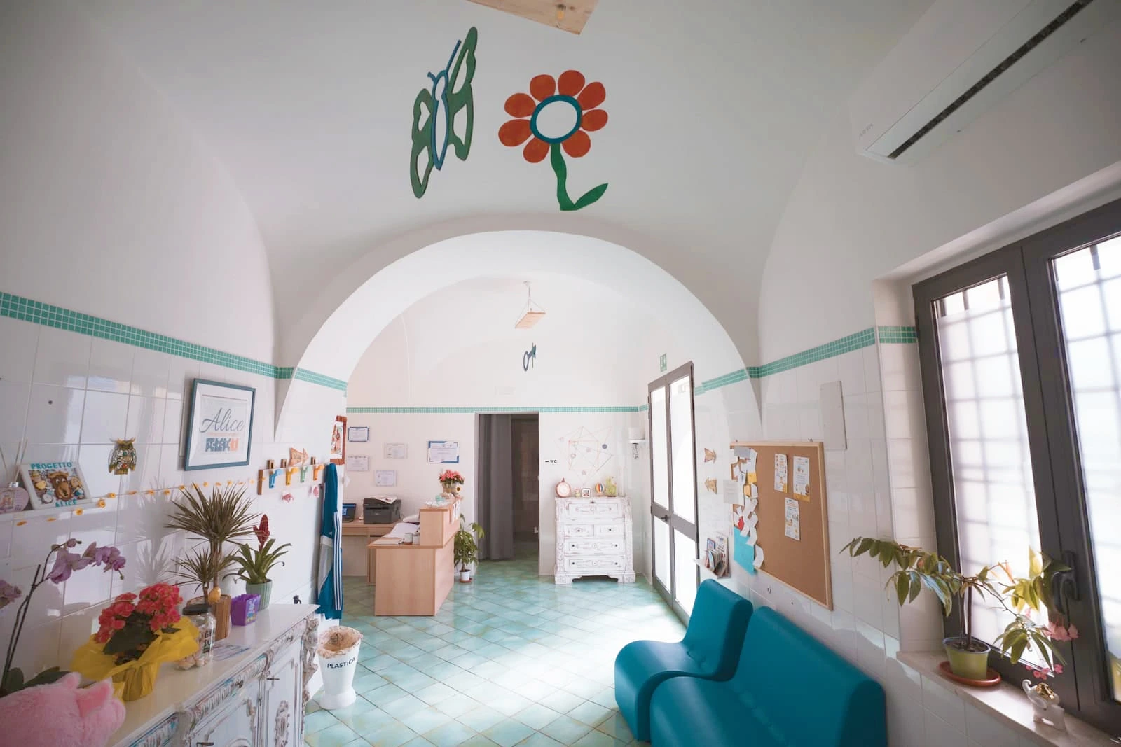 La nostra struttura offre ampi spazi, all’interno disponiamo di un’area di circa 200 mq, all’esterno un vasto parcheggio privato. Progetto Alice si divide in diverse aree: all’ingresso troviamo la reception e infodesk con comode sedute e giochi di intrattenimento.